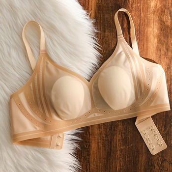 Yaz ultra ince kumaş görmek kablosuz rahat kadınlar için uyku dikişsiz katı tel ücretsiz jöle sütyen minimizer büstü hızlı kuru